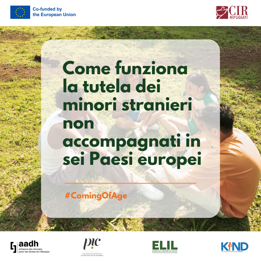 Il progetto è co-finanziato dalla Commissione Europea e lo realizziamo in qualità di capofila insieme a 4 organizzazioni di 6 Stati membri: Alliance des Avocats pour les Droits de l’Homme (AADH, Francia), ELIL – European Lawyers in Lesvos (Grecia e Polonia), KIND – Kids In Need of Defence (Belgio e Slovacchia) e PIC – Pravni Center za Varstvo človekovih Pravic in Okolja (Centro legale per la protezione dei diritti umani e l’ambiente, Slovenia).