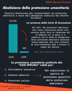 La seconda area di preoccupazione riguarda l’abolizione della protezione umanitaria e l’irrigidimento delle regole di conversione per i nuovi pds previsti. La scelta fatta da un lato non dà piena attuazione all’art. 10 della Costituzione e agli orientamenti più volte espressi dalla Cassazione. Allo stesso tempo sembra davvero irragionevole che si rinunci a una flessibilità che aveva lo scopo di far emergere e assicurare un percorso legale a quei richiedenti asilo che avevano positivamente avviato un percorso di integrazione attraverso un lavoro regolare, che avevano anche magari costituito una nuova famiglia e che non avevano controindicazioni sotto il profilo dell’ordine e della sicurezza pubblica.